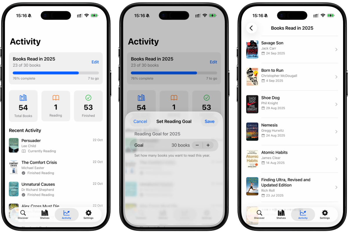 As with Micro Social, you will also be able to set yourself a goal and track all of your reading activity in the app. Saved books you want to read, show the ones you currently have open, and review the ones you finished.