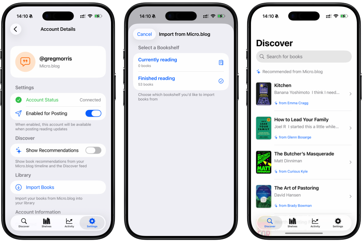 One of the biggest things I miss from moving away from Micro.blog is book tracking. There are, of course, a huge number of other apps out there, but nothing that reflects the simplicity of the books tab I created in Micro Social. So this is the result of my journey to find it again.
